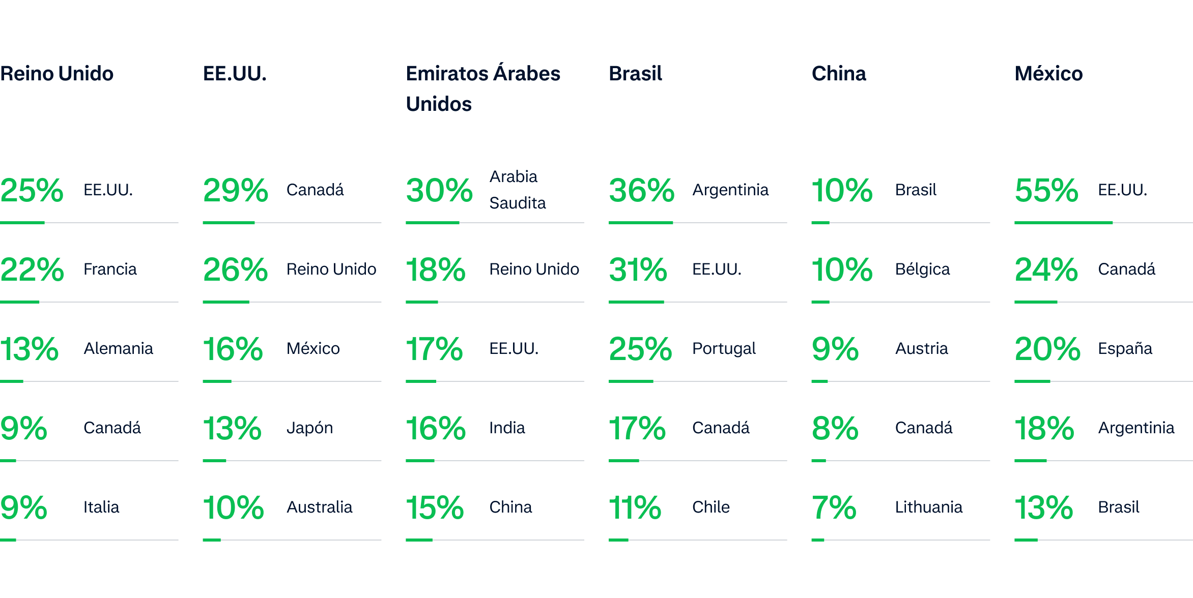 La mayoría de las empresas digitales (72%) en México planean expandirse a nuevos mercados, siendo Estados Unidos, Canadá y España los tres principales mercados objetivo.