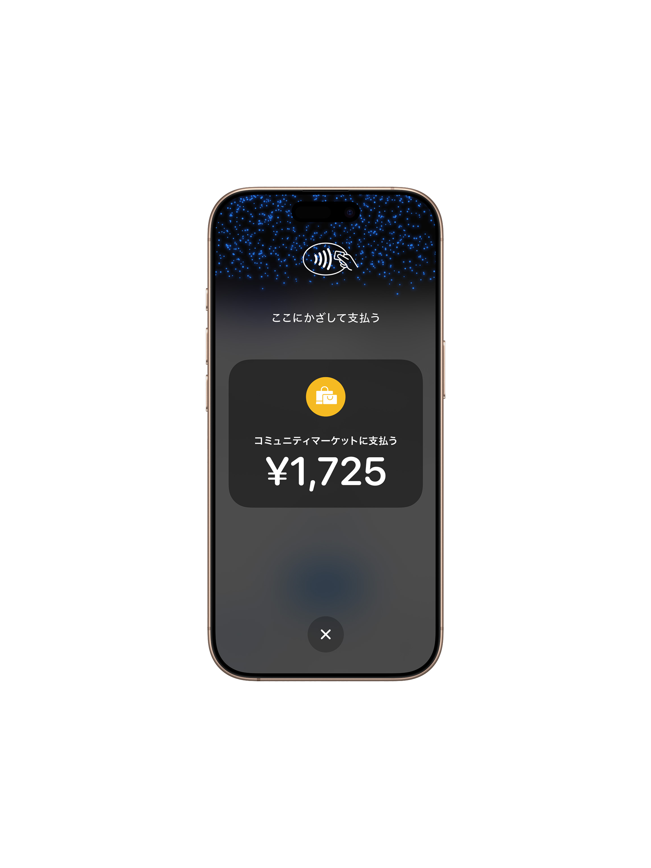iPhoneのタッチ決済には、対応する支払いアプリと、iOSの最新バージョンが必要です。最新バージョンにアップデートするには、「設定」>「一般」>「ソフトウェアアップデート」の順に進み、「ダウンロードしてインストール」をタップします。支払いアプリによっては一部の非接触決済のカードを利用できない場合があります。取引制限が適用される場合があります。非接触決済のマークはEMVCo, LLC.が所有する商標であり、同社の許可のもとで使用されています。iPhoneのタッチ決済は特定の国と地域で利用できます。iPhoneのタッチ決済を利用できる国と地域についてはhttps://developer.apple.com/jp/tap-to-pay/regions/をご覧ください。