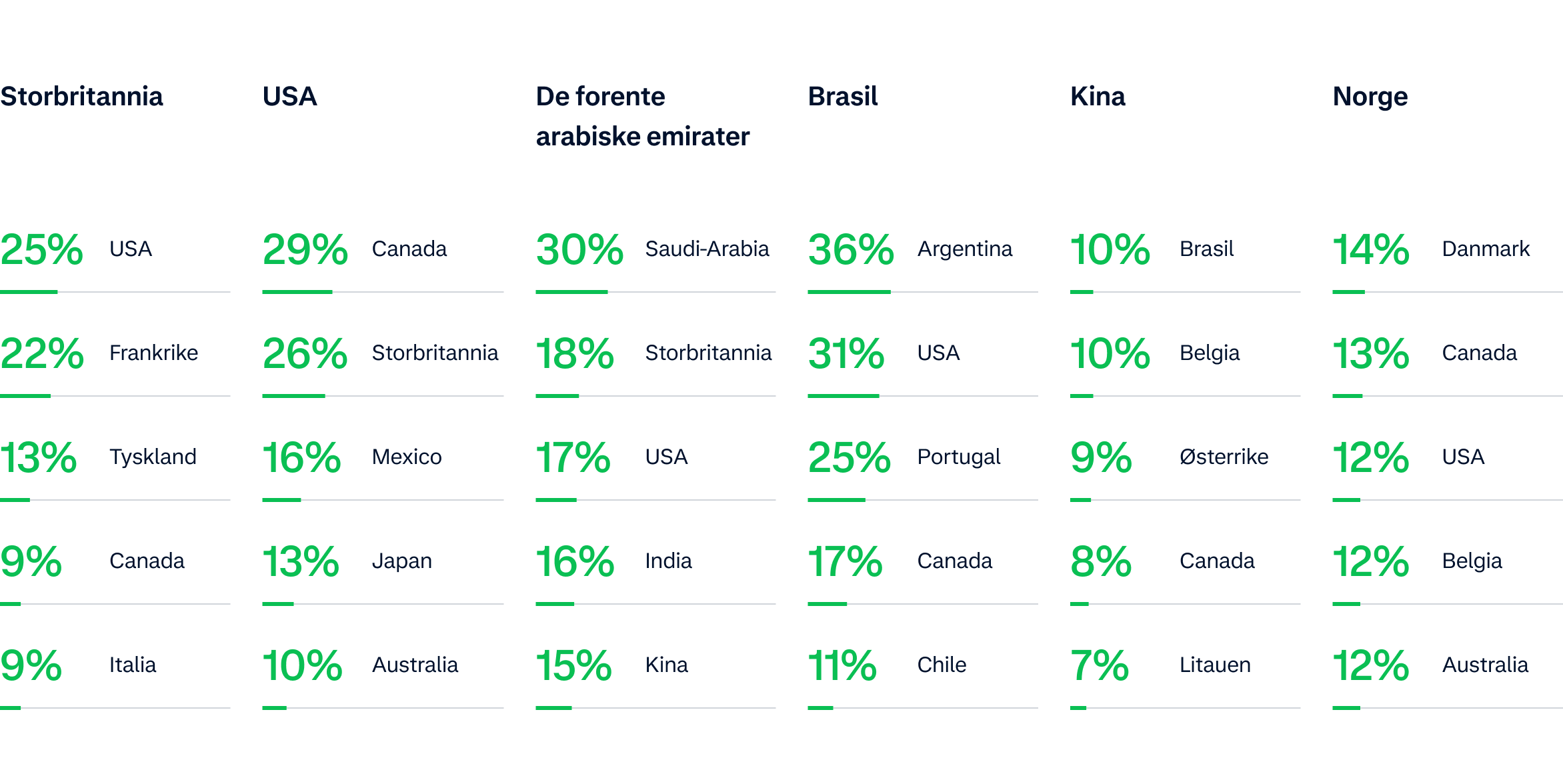 De fleste kunder foretrekker fremdeles å betale med kredittkort på nett, men lokale betalingsmetoder er i rask fremmarsj over hele verden. I deler av Asia, for eksempel, foretrekker 40 % av kundene å bruke digitale lommebøker som Apple Pay og Google Wallet ved betaling på nett, mens bare 26 % av kundene i USA foretrekker digitale lommebøker. Kjøp nå, betal senere blir også stadig mer populært på europeiske markeder som Norge (38 %), Sverige (34 %) og Nederland (27 %). Sist, men ikke minst er også bankbetaling på vei oppover som en lokal betalingsmetode på markeder som Brasil (41 %) og Hongkong (22 %).