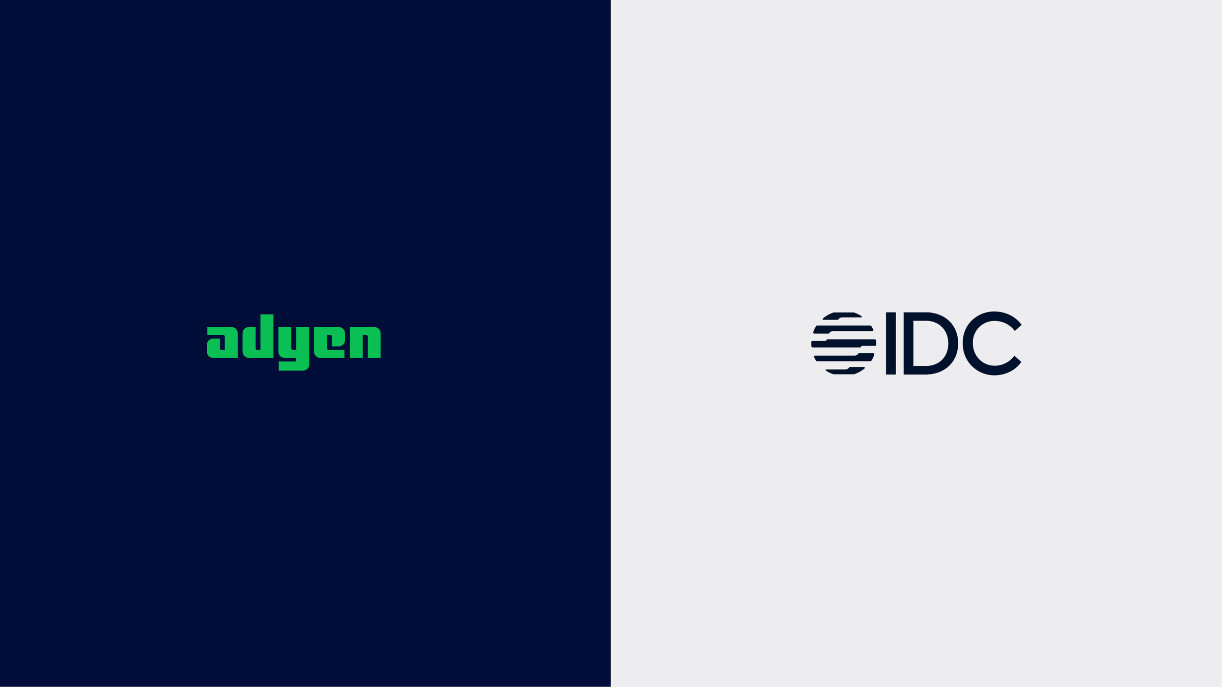 Adyen and IDC logos side by side on a split background.